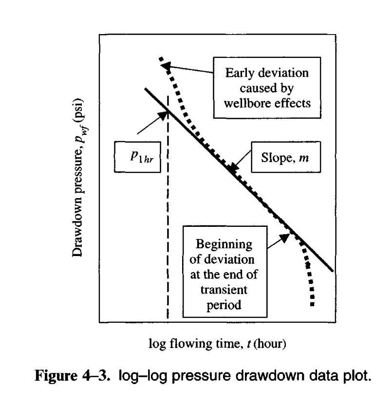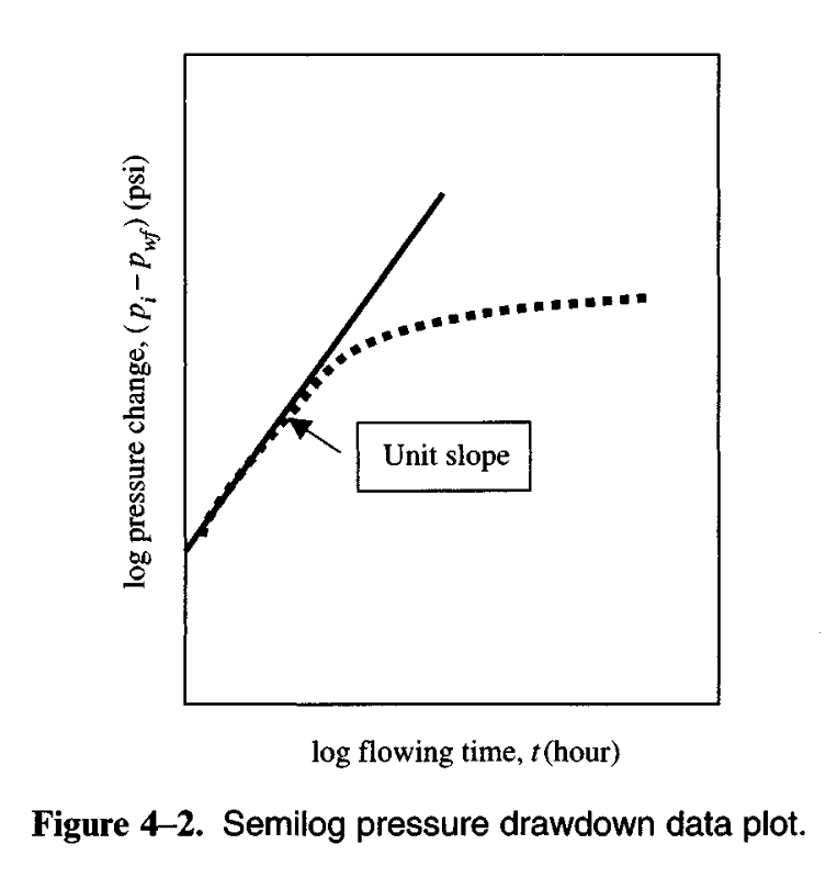 An ideal constant-rate drawdown test in an infinite-acting reservoir is modeled by the logarithmic approximation to the Ei-function solution: